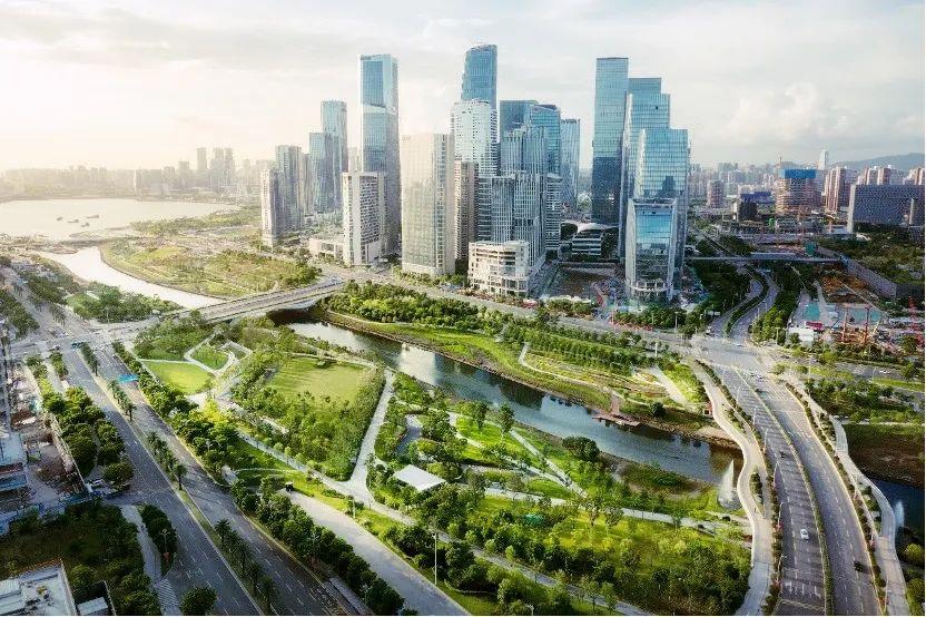 桂湾公园是由前海控股子公司——前海公共环境公司负责建设的城市水廊道公园。该公园全长1.9公里,总面积约45公顷,中央水域约占四分之一,是一个一河两岸一岛多层级绿地的带状城市公园。