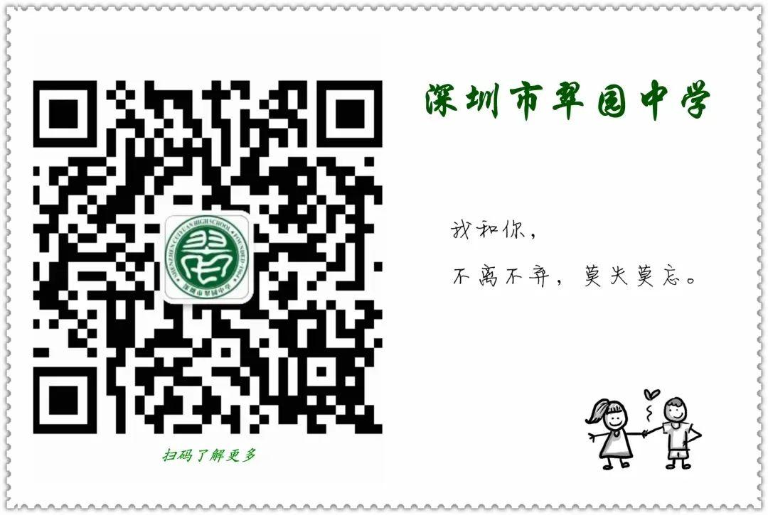 (2)初三学生家长可关注“深圳市翠园中学”公众号,可以及时获取学校的日常动态,可以对学校有一个更加全面和系统的了解。
