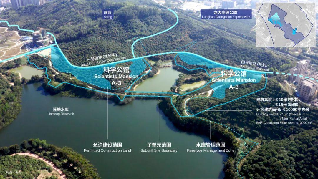 光明科学家谷项目选址于大科学装置集群核心区内,占地约1.2平方公里,是指莲塘水库、楼村水塘以及联系其间的山谷空间,具有山水相嵌的独特生态优势。
