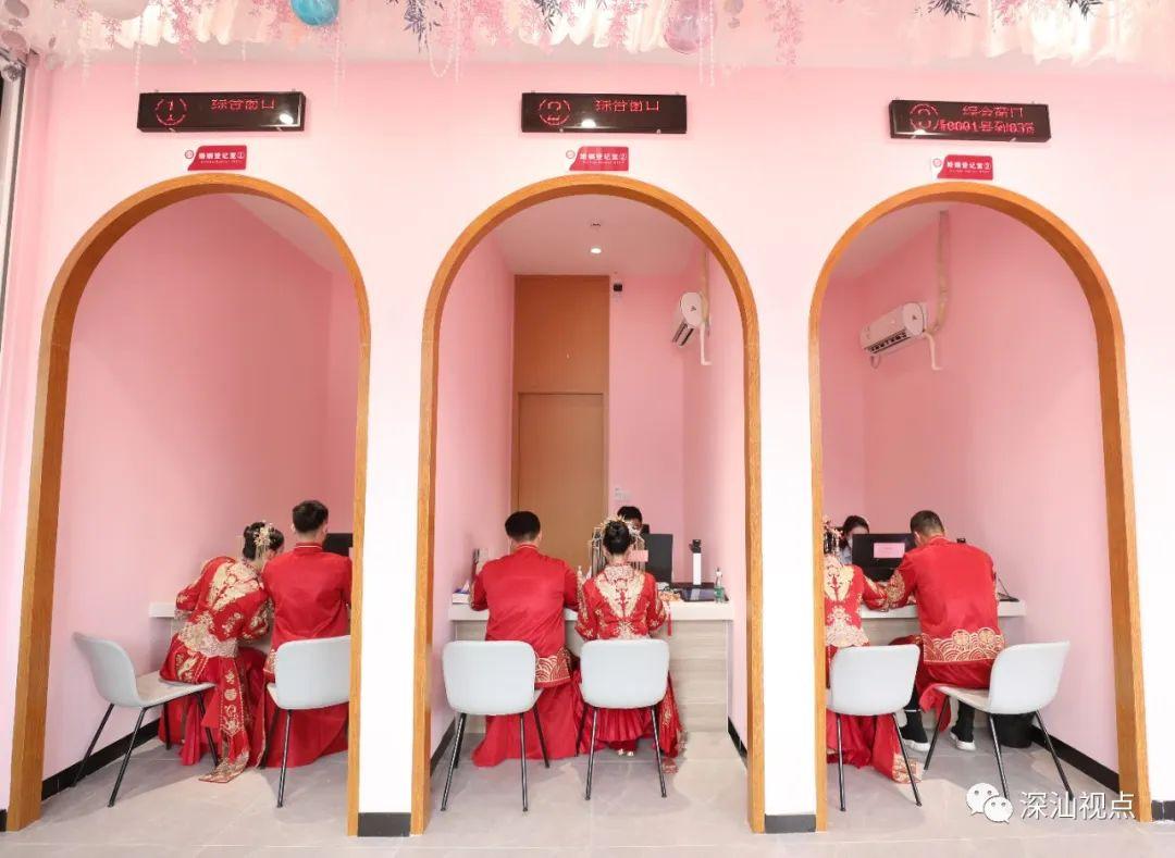 婚姻登记处设有候登大厅、结婚登记区、离婚登记室、家庭婚姻辅导室、颁证厅、婚前辅导讲堂兼会议室等区域,配套设施完善,室内布置典雅浪漫。