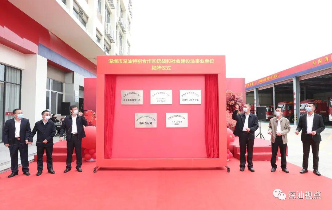 3月31日,深圳市深汕特别合作区社会事务服务中心(婚姻登记处)、劳动人事争议仲裁院(劳动人事争议仲裁委员会)、退役军人服务中心三个事业单位揭牌启用。这标志着深汕特别合作区开始独立办理相关业务,在聚焦民生民意、提升服务水平方面迈出了一大步,有利于不断提升群众幸福感、获得感。