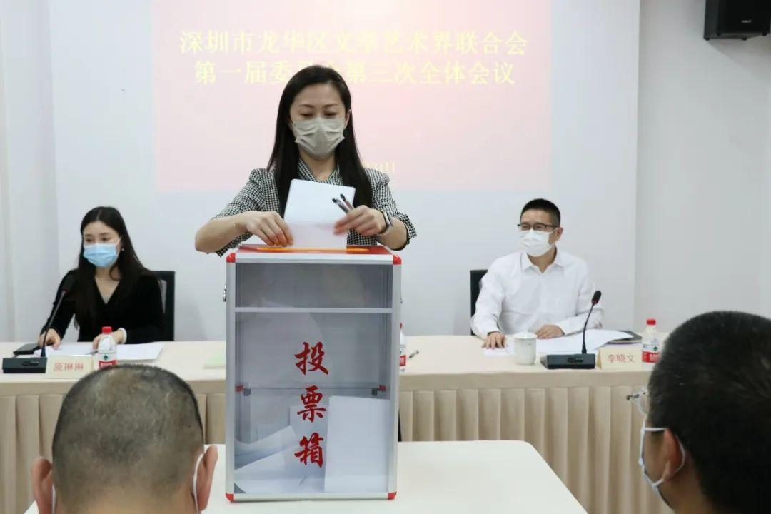 李晓文副部长宣读任职文件,并由全体委员会选举产生原琳琳为龙华区文学艺术界联合会主席。