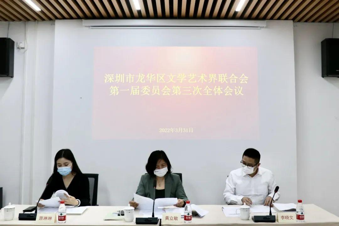 3月31日,深圳市龙华区文学艺术界联合会第一届委员会第三次全体会议在龙华文艺之家报告厅胜利召开,龙华区委常委、宣传部部长黄立敏,龙华区文学艺术界联合会第一届委员会委员出席会议,龙华区委宣传部副部长李晓文主持会议。
