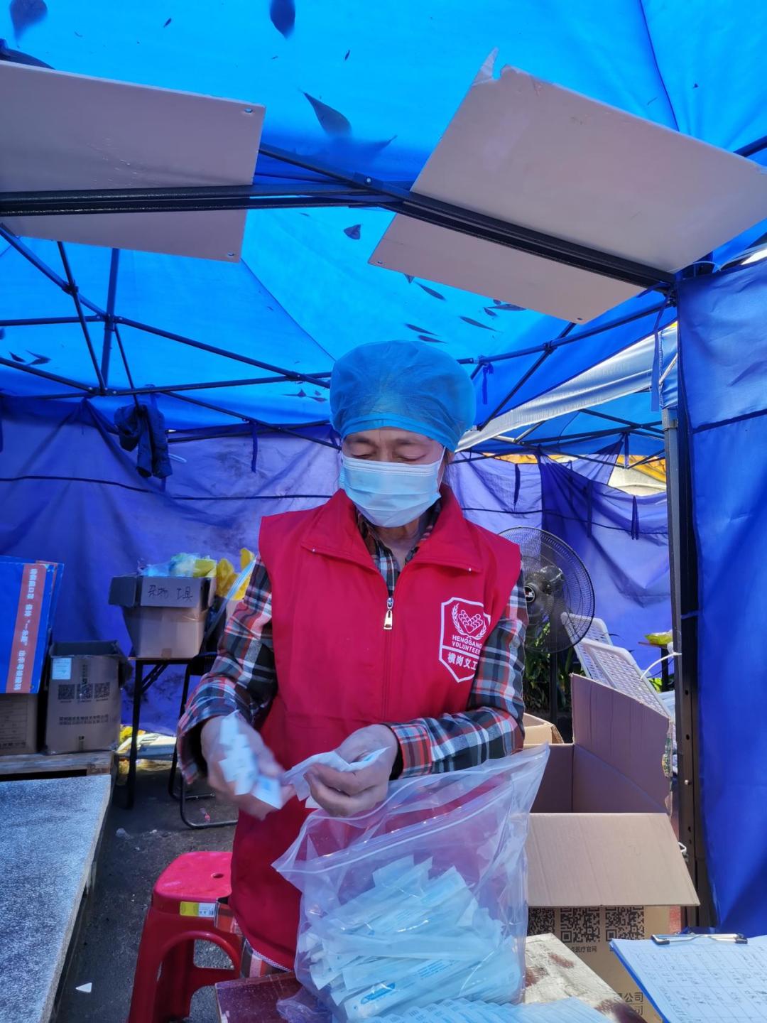 在松柏社区检测点每天都能看到她的身影,布置现场、清点物资、引导居民、协调招募义工、上门通知等工作。她表示非常荣幸与庆幸成为一名光荣的志愿者,带动并感染着身边的亲朋好友乃至整个家庭加入义工服务行列当中来,给身边的周围人群传递正能量与阳光!