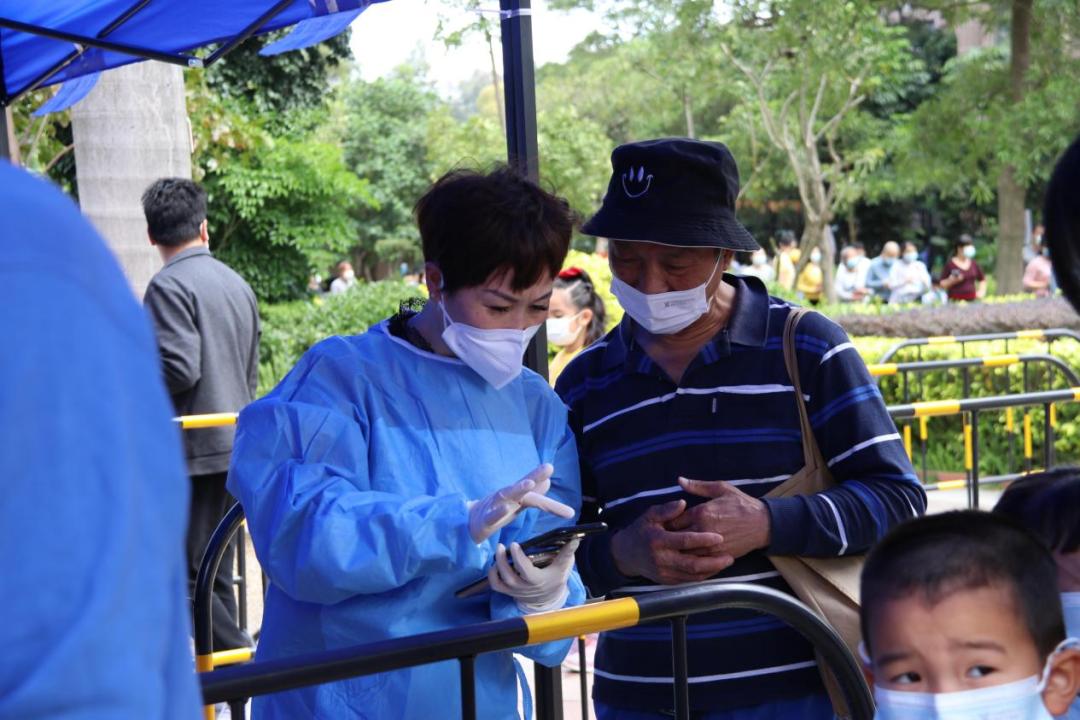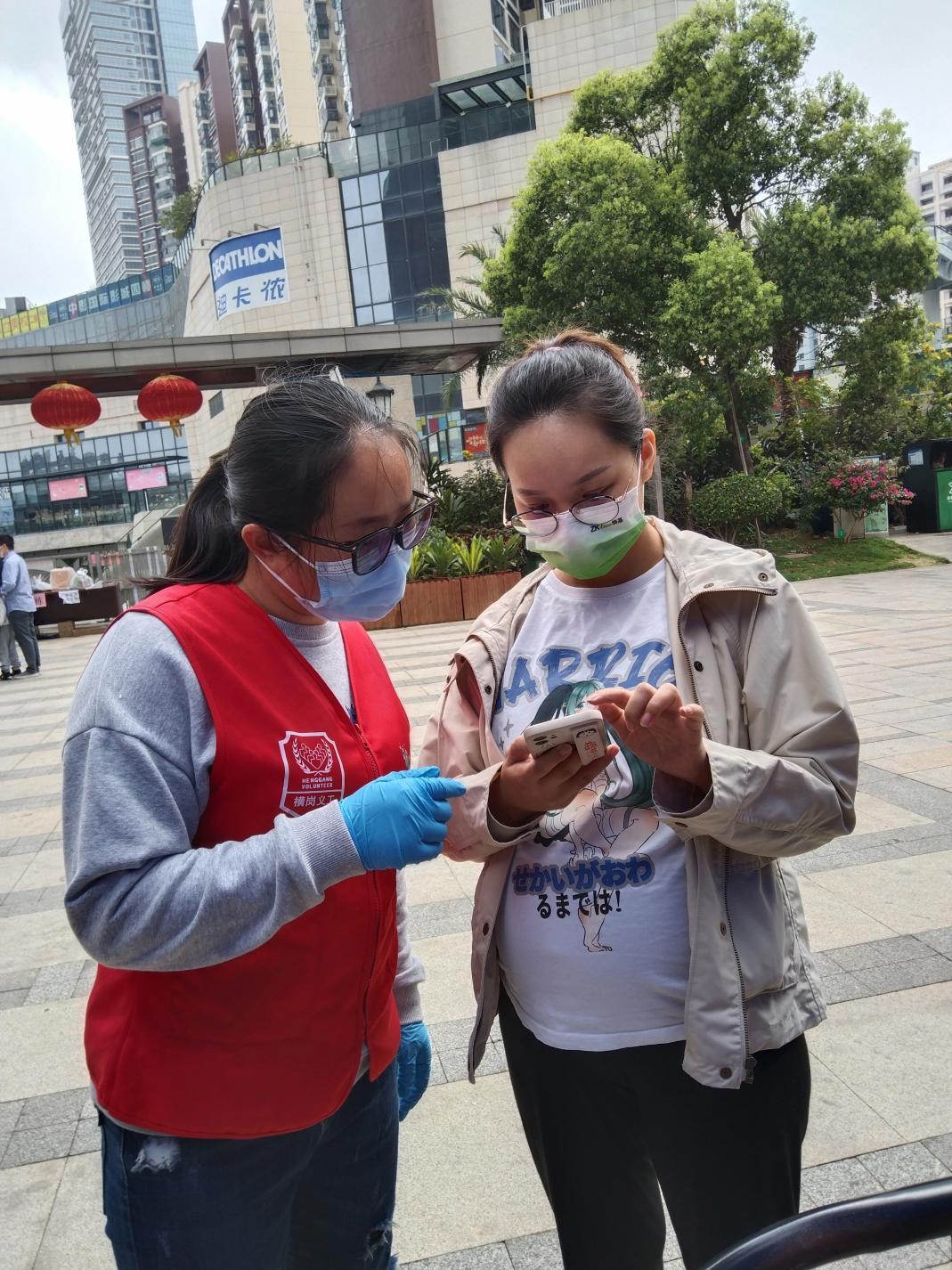 3月14日以来,52岁的志愿者张明霞一直在街道采样点提供志愿服务。负责维护现场秩序、亮“绿码”、扫“粤核酸”、核对身份信息和核酸码、为老弱病残孕安排“特殊通道”。渐渐的霞姐都成了大家心目中的“明星”,很多参与服务的小伙伴都是受霞姐的感召,投入到横岗抗疫的志愿服务中。经常有前来做核酸的市民给霞姐打招呼,竖大拇指,给她点赞。