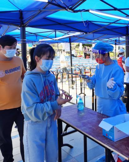 "大和采样点是一个露天的演出广场,进入采样需要过几道阶梯,这给老弱妇孺也带来了不便,这也是我非常上心的事,除了不断提醒他们注意阶梯,经常扶助老弱者、搬婴儿车下阶梯,同时还把安全提示贴在每一格阶梯上。在收尾阶段,我还参加了核酸小分队,为一些行走不方便的老弱病者上门扫码采核酸。"