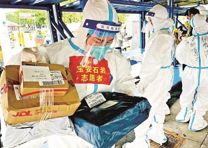 日前,按照疫情处置工作要求,宝安区在石岩街道水田社区精准划定封管防“三区”,石岩街道青年志愿者先锋队和青年突击队成员正在保障着辖区里居民和医护人员的应急所需。