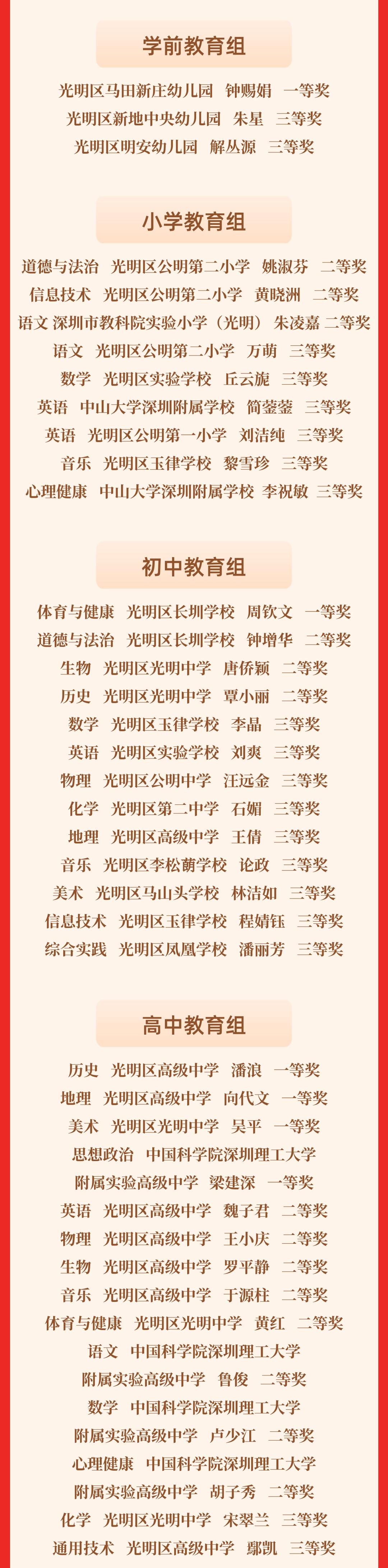 光明区共有40名教师在大赛中取得优异的成绩!