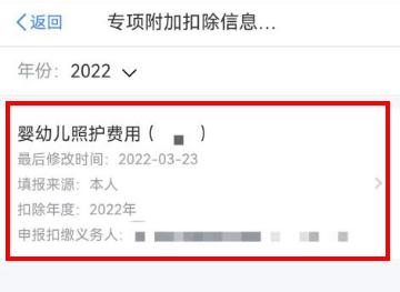 纳税人登录手机个人所得税APP后,可通过“首页——常用业务——专项附加扣除填报”或“办税——专项附加扣除填报”进入专项附加扣除填报界面,并选择“婴幼儿照护费用”专项附加扣除。