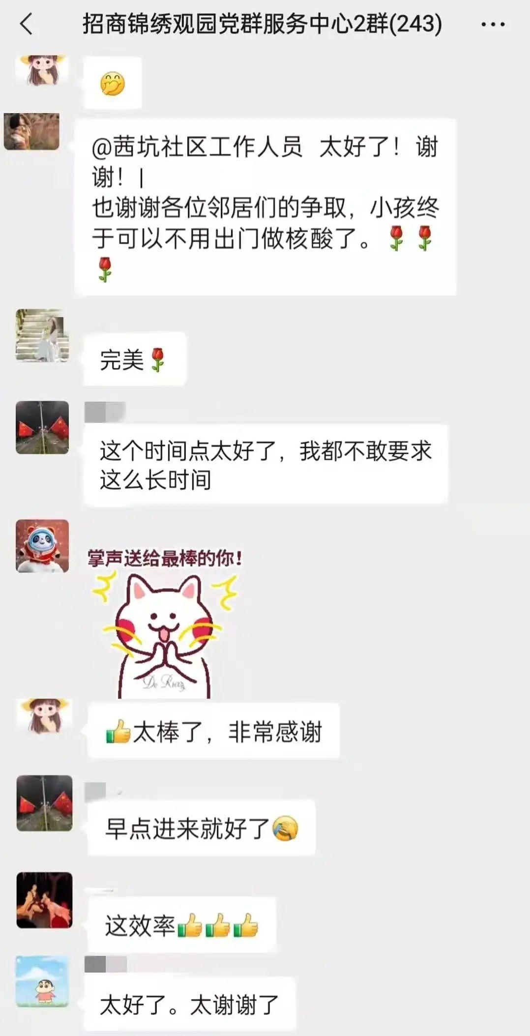 “这个便民核酸点能开展,我们居民都是很开心的,确实给家里老人、孩子带来实实在在的便利,这也是我们与社区沟通协商的结果,也算是参与了社区共建共治,还蛮有成就感的。”招商锦绣观园张先生说。