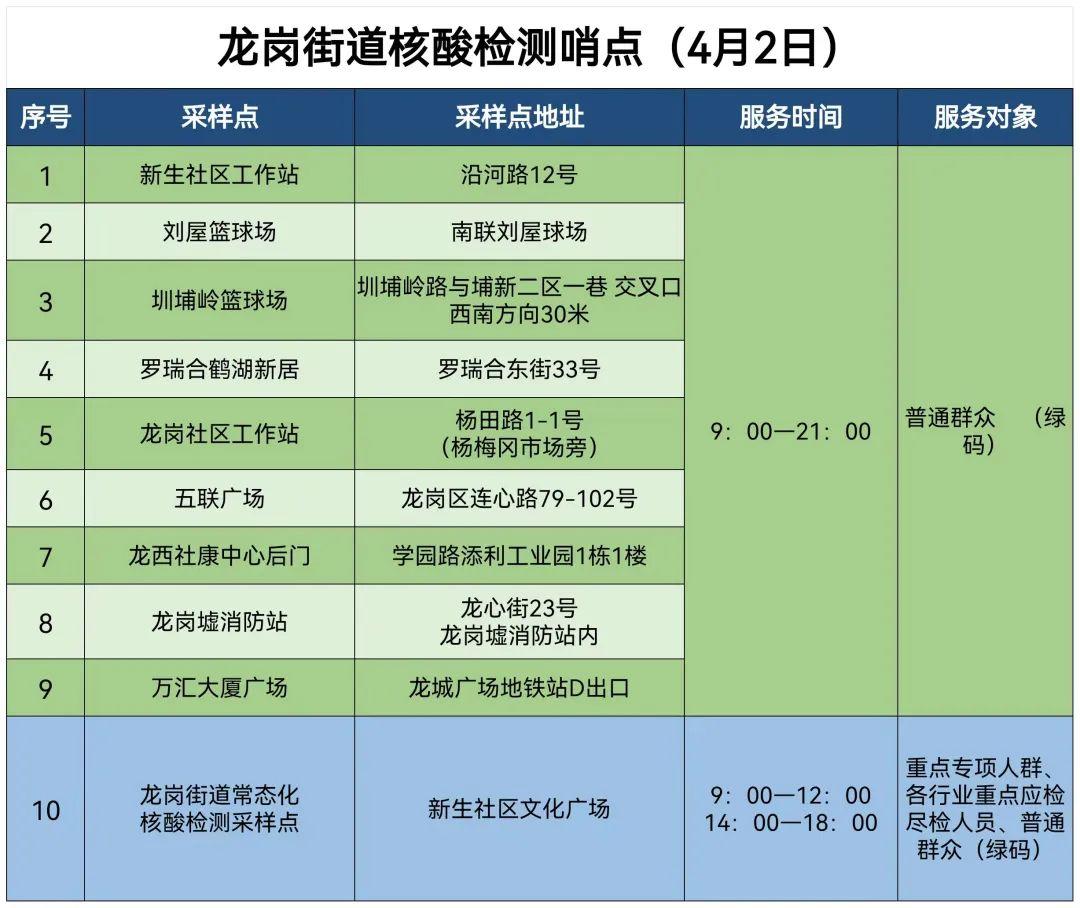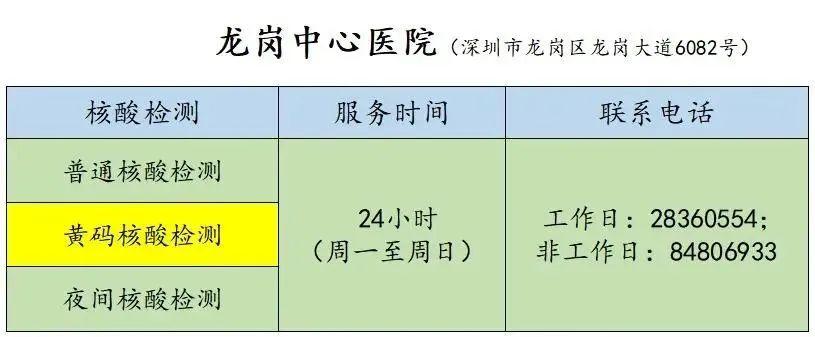 如在街道统一安排以外的时间有核酸检测需求,建议前往附近的公立医院(龙岗中心医院),全天24小时可采样。
