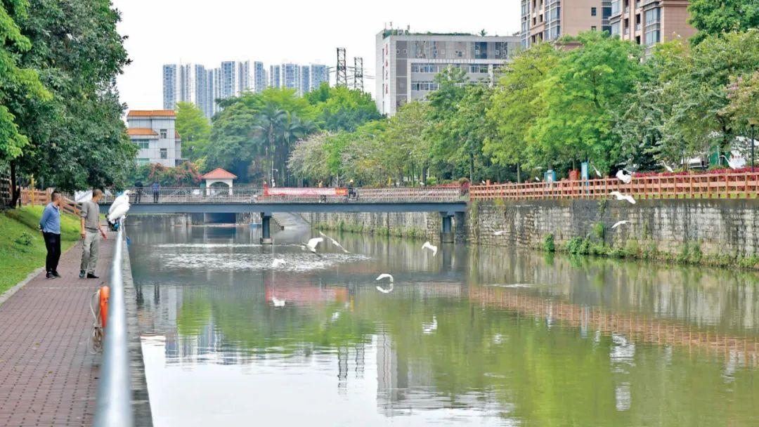 ● 近日,宝安双界河畔水面上涨,引来不少鹭鸟停驻、觅食。