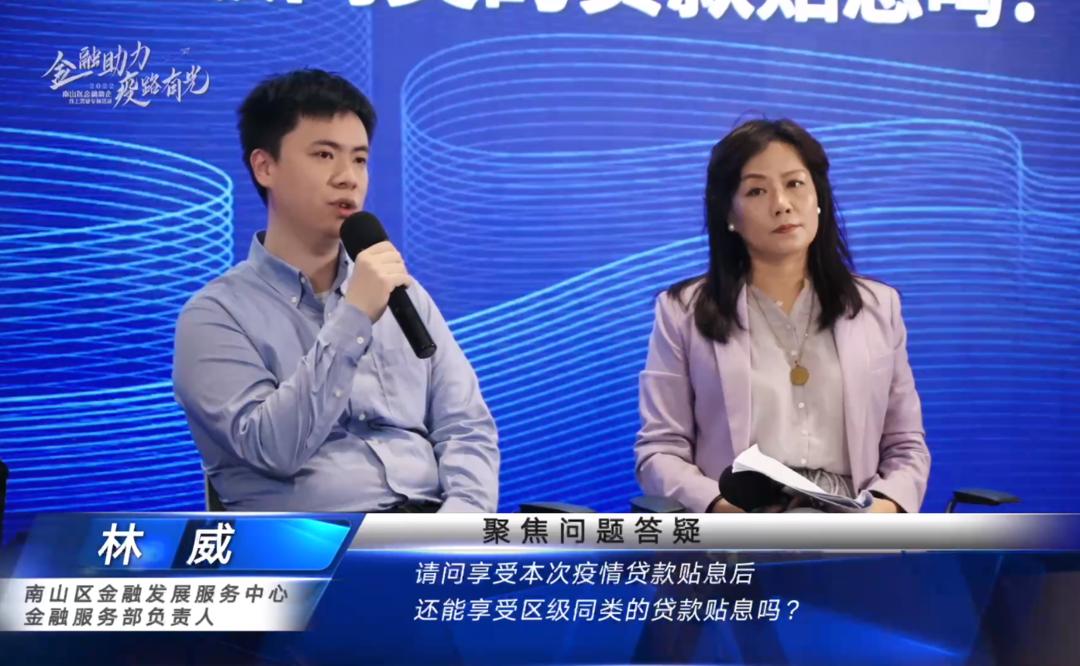 3月25日,《南山区2022年助企(个体工商户)纾困专项扶持措施》(以下简称《专项扶持措施》)正式印发,包括租金减免、援企稳岗、金融支持等七大类18项具体措施,旨在更好地统筹疫情防控和经济社会发展,着力纾解企业困难。区金融发展服务中心林威就企业最关切的“金融扶持政策”中区级贷款贴息、担保扶持申报条件、流程、资助比例等详细介绍。据了解,享受本次疫情贷款贴息政策后的企业,还能继续享受区级同类贴息政策。