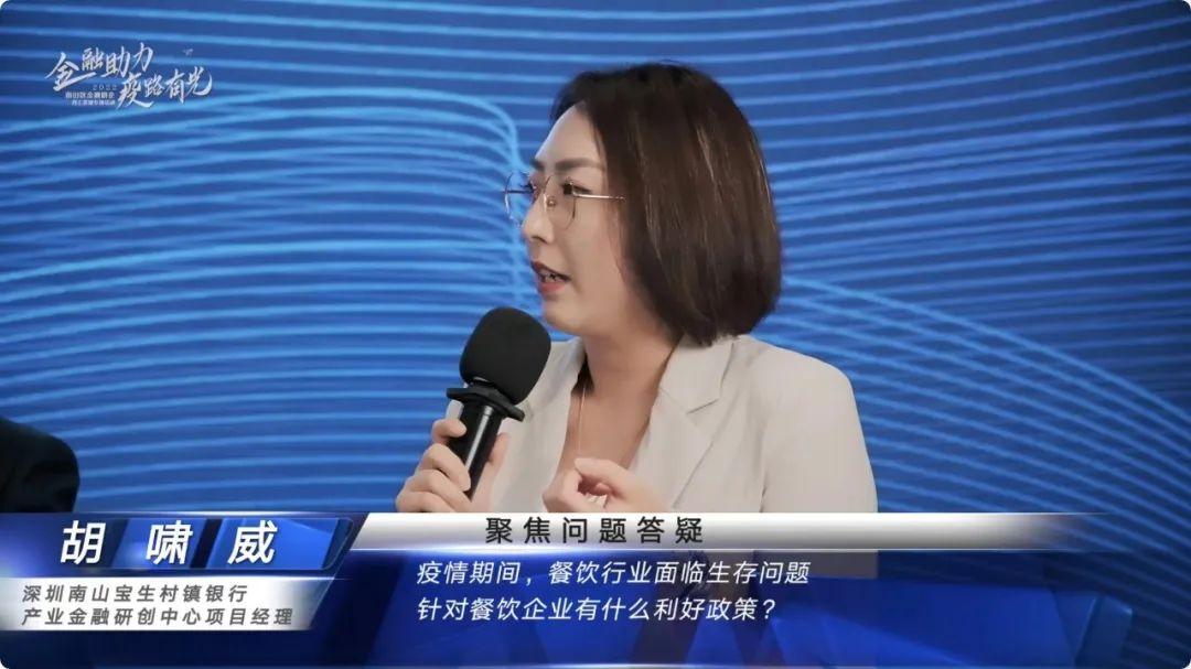 活动通过直播集中回答企业疑问,如是否推出阶段性延期还本付息政策?是否有周期更长、利率更低的贷款或担保产品?已贷款企业能否再贷款、再担保?……据了解,疫情期间宝生村镇银行“科技金融贷”产品就贷款期限、优惠利率、延期还贷等做了针对性调整,助力企业渡过难关,同时推出系列信贷产品满足受疫情影响最大的餐饮行业企业。针对近期不稳定的国际形势,宁波银行及时上线汇率管理产品及功能,帮助进出口企业灵活应对汇率波动带来的风险。民生银行连续推出基础结算“携手计划”、“中小信贷计划”、投贷联动“萤火计划”,不断助企惠企。高新投推出创业担保贷、知识产权证券化、担保费降费让利、简化审批材料、审批绿色通道等,全力扶持中小微企业度难关、稳发展。