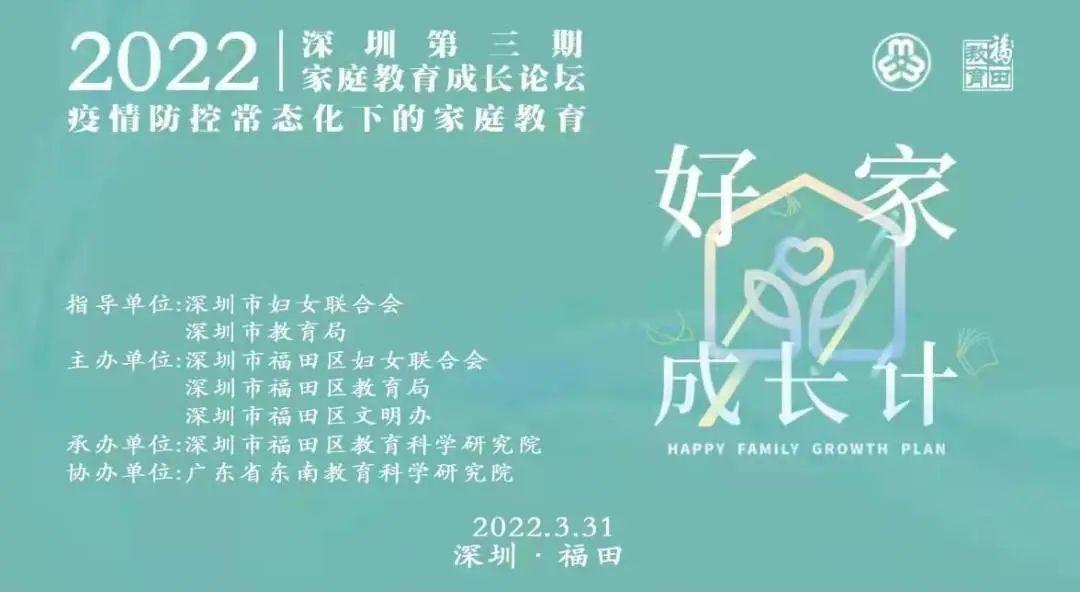 家庭教育是国民教育的重要组成部分,是学校教育和社会教育的基础。为贯彻落实习近平总书记关于注重家庭家教家风建设的重要论述精神和《中华人民共和国家庭教育促进法》, 3月31日,由福田区妇联、福田区教育局、福田区文明办联合主办的“好家成长计——深圳第三期家庭教育成长论坛”在福田成功举办。