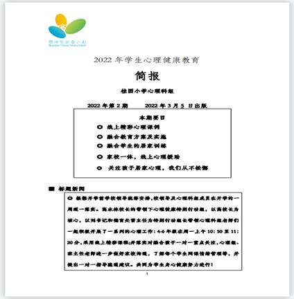 ● 滨河小学推出“居家有方,心理老师来支招”学生和家长心理健康教育系列服务;