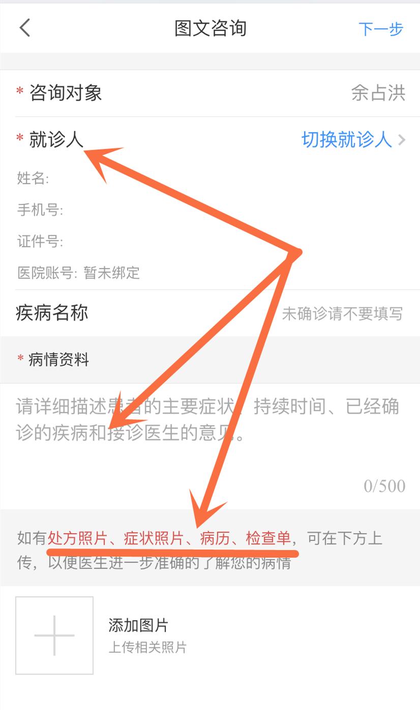 添加“就诊人资料”和“病情资料”,即可与医生进行线上留言与视频预约问诊,咨询医生收到消息后会第一时间与患者联系。