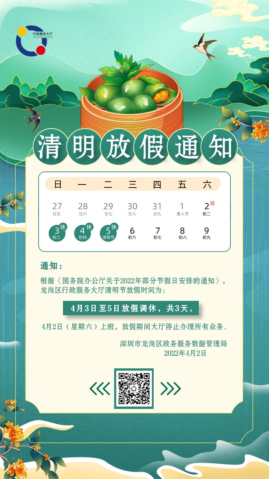 【微公告】龙岗区行政服务大厅2022年清明节放假安排