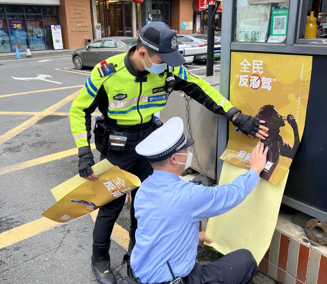 深圳交警在市内各大商业中心开展反酒驾交通安全海报宣传。