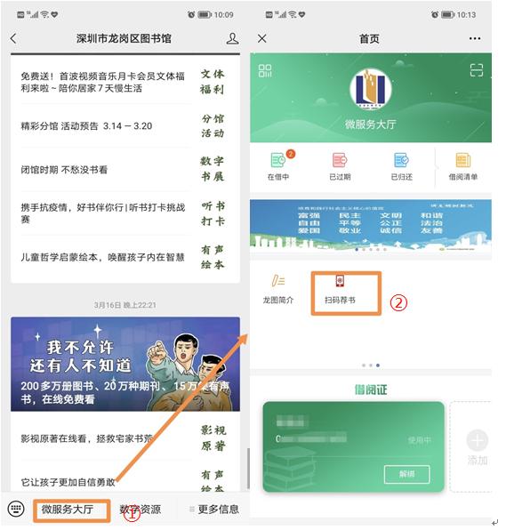 微服务大厅→办鹏程励读证→根据提示办证→出示二维码读者证→借书
