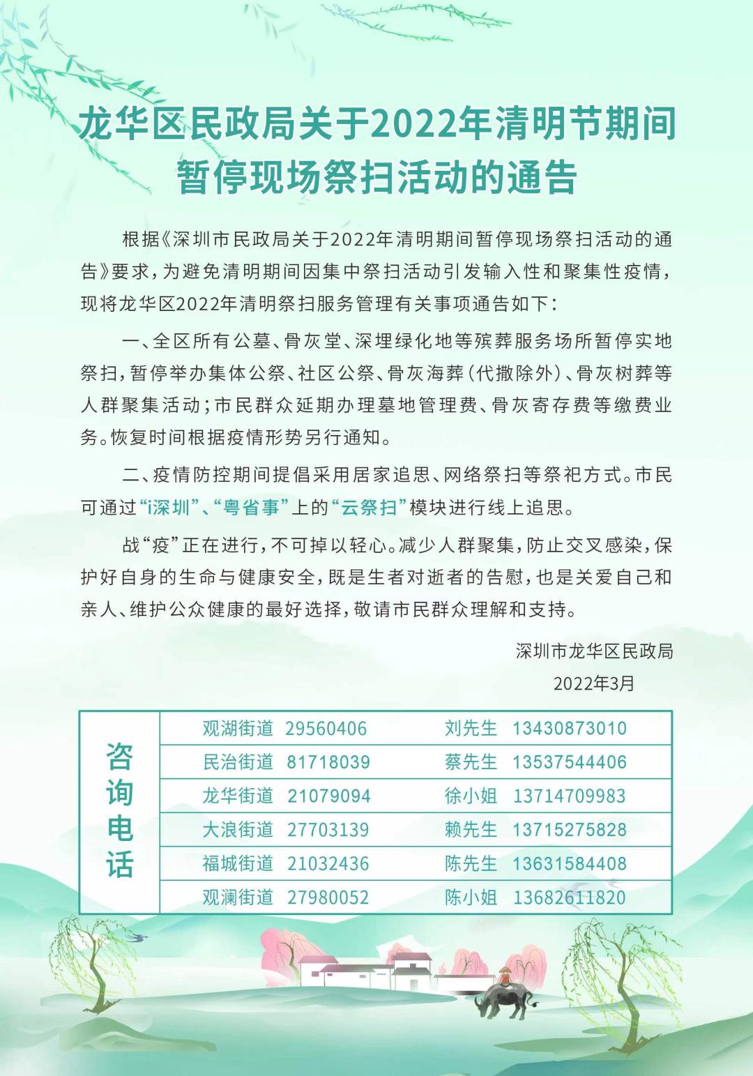 龙华区关于2022年清明节期间暂停现场祭扫活动的通告