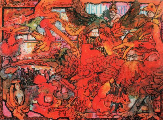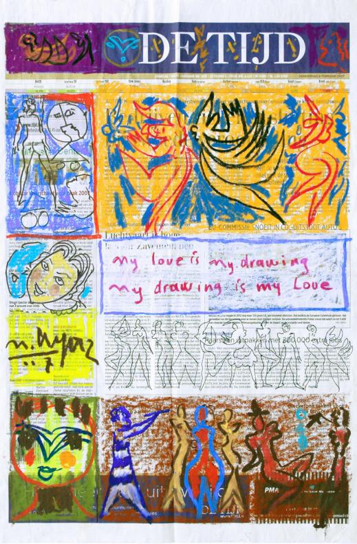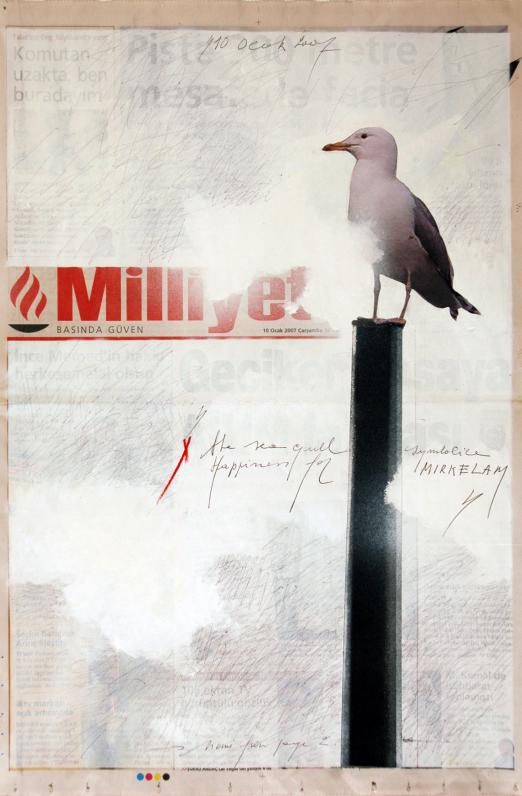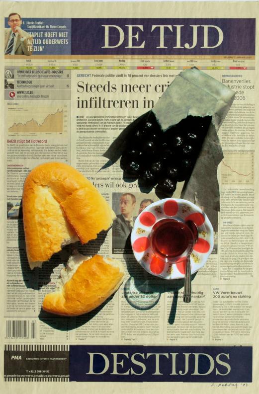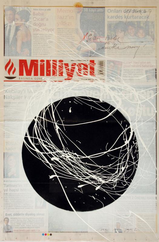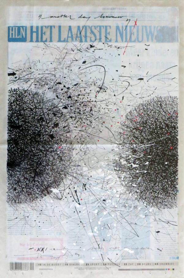 In 2008, I did the project in cooperation with 31 Turkish artists. Prof. Hasip Pektas who is like my right hand in this project wrote that, “When Martin asked me to work with him I was questionable, forward looking to the reactions of the public that would be skeptical about art being made on a newspaper. But when I saw the work that Martin made on the January ‘Milliyet’ newspapers I was fascinated.” The project was running for 31 days, everyday there was another Turkish artist at work. Against that I gave my vision for 31 days. The project was easy to realize as the newspapers were sent by postal mail. The City Museum of Sint-Niklaas organized and presented this exhibition in Belgium and the Isik University presented the exhibition in Istanbul.
