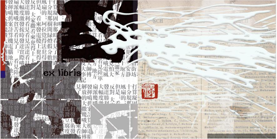 In October, 2008, I was an participant of the International Ex libris Congress in Beijing. I met a lot of interesting artists from almost all of the Chinese provinces. I have done the proposal to them to make an ex libris together with a duo ex libris. This project is very unique and has never been done before. In this way, we made a connection between East and West. These artists have taken part in the project: Chen Hao, Dong Xiaozhuang, Liu Shuohai, Niu Mingming, Zhang Jiarui and Zhang Zihou. Every ex libris has the same format and the entire piece is divided into 2 equal parts. The Chinese artists have started the work on the left part and my responds would be on the right part. The images are send via internet several times from China to Belgium and visa versa. In this moment, the two artist are satisfied about the result of the ex libris.