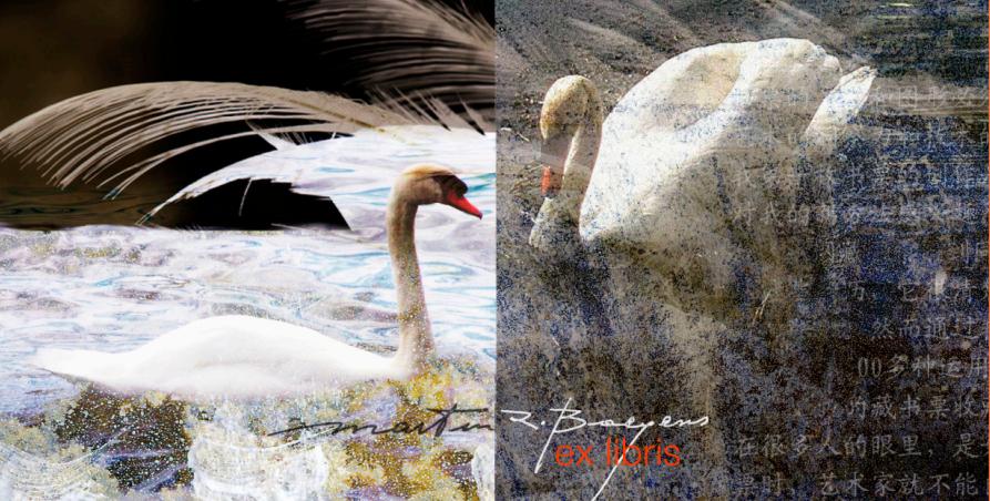 2008年10月,我参加了在北京举行的国际藏书票大会。我遇到了来自中国各省的艺术家,我向他们提议合作开展双人藏书票项目,他们都非常感兴趣。这一项目十分独特,以前从未有人做过。通过这种方式,我们为东西方藏书票的创作建立了联系。陈浩、董小庄、刘硕海、牛明明、张家瑞和张子虎等艺术家都参与其中。每件藏书票作品的格式是相同的,都被划分为了相同的两个部分,中国艺术家负责完成左边的部分,而我负责完成右边相应的部分。这些图像通过互联网从中国发送至比利时,又从比利时发送回中国。目前,双方的艺术家都对藏书票创作的结果感到十分满意。
