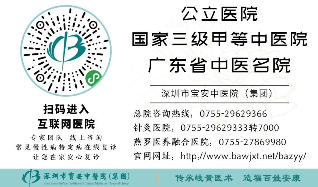 地址:宝安30区裕安二路25号 宝安中医院(集团)仲景楼二楼