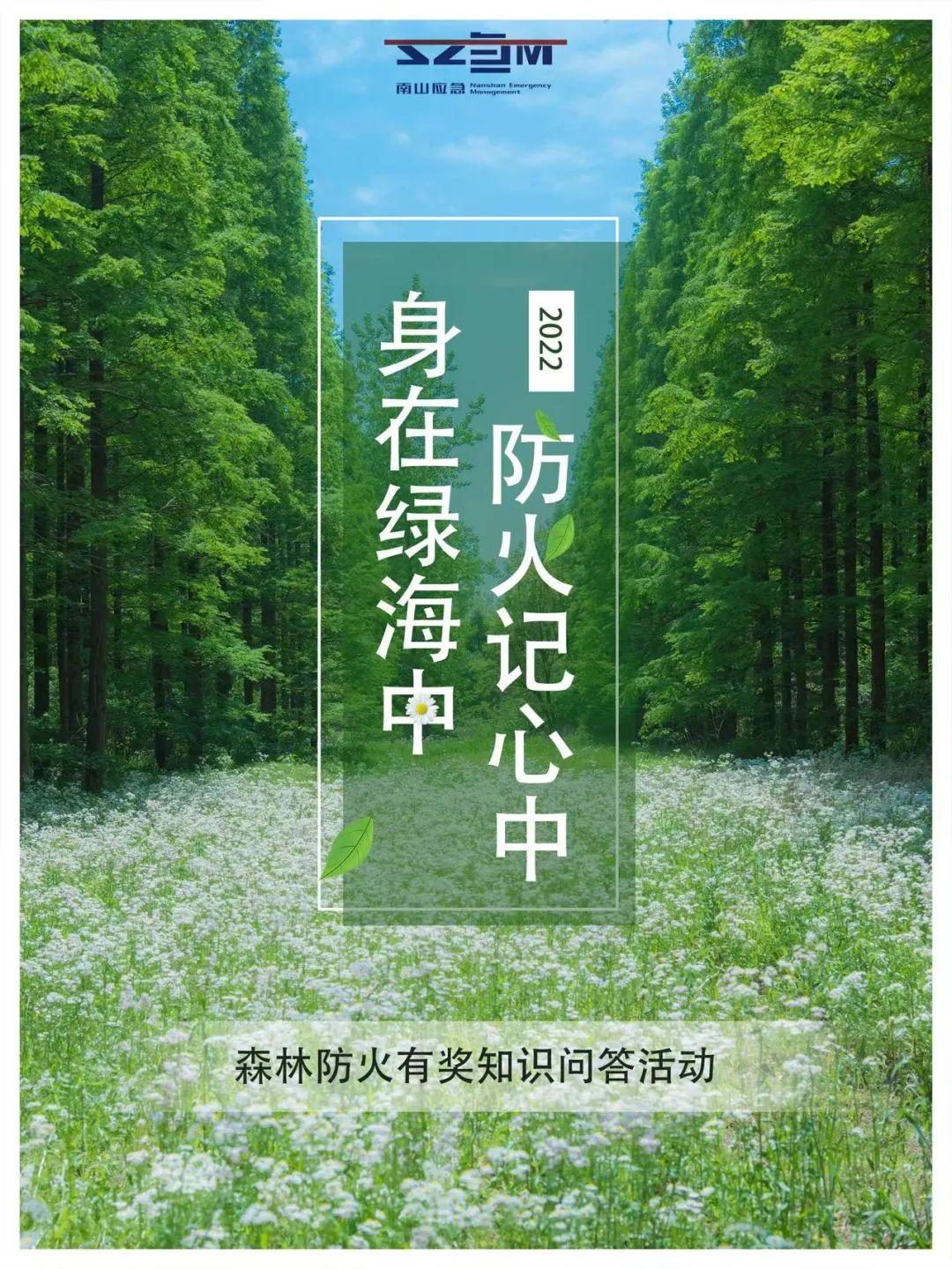 为更加深入学习和宣传贯彻好森林、草原防火方面的知识,推动广大群众对森林草原防火的理解及认识,增强森林、草原防火自觉性。南山应急管理局将在清明假期期间举行一期“身在绿海中 防火记心中”有奖知识问答活动~活动时间为即日起至下周二(4月2日20:00-4月5日20:00),南山应急君将在关注本公众号的粉丝中,随机抽取二十位参加本次活动并回答正确全部题目的小伙伴,送出应急包、彩色铅笔等精美礼品一份!心动不如行动,快往下答题吧!
