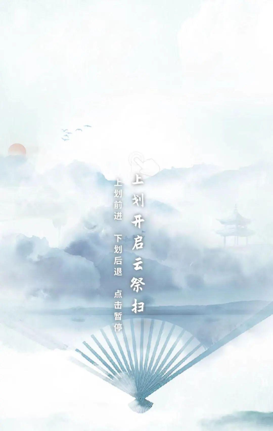 1、上划开启“云祭祀”(该页面动画可通过“上划前进、下划后退、点击暂停”查阅翻看),再选择点击“送上寄语”。