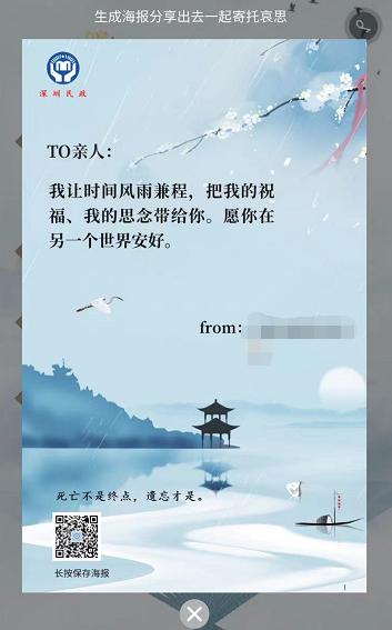 3、生成海报之后,可以保存至手机,分享出去,与家人朋友一起寄托哀思。