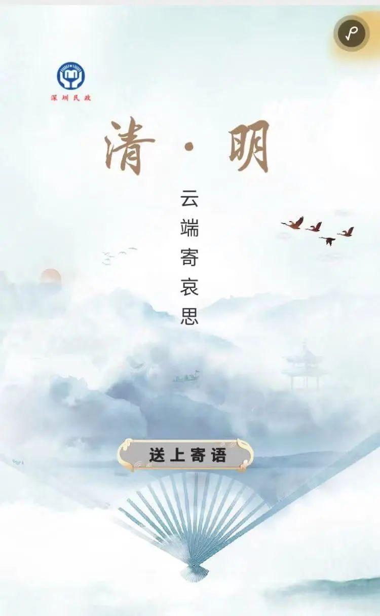 市民朋友可以关注“深圳民政”官方微信公众号后,点击菜单栏“民政业务”,点击“清明云祭扫”即可进入H5页面。