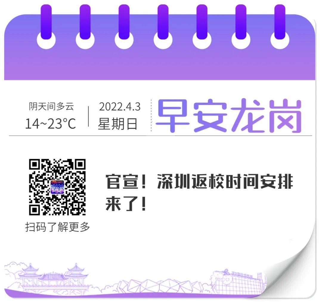 4月2日,深圳教育发布消息,近期深圳市将根据“分级、分区、分批”原则扎实有序推进各级各类学校(园)返校复课工作,并公布返校时间安排。详情点>>>
