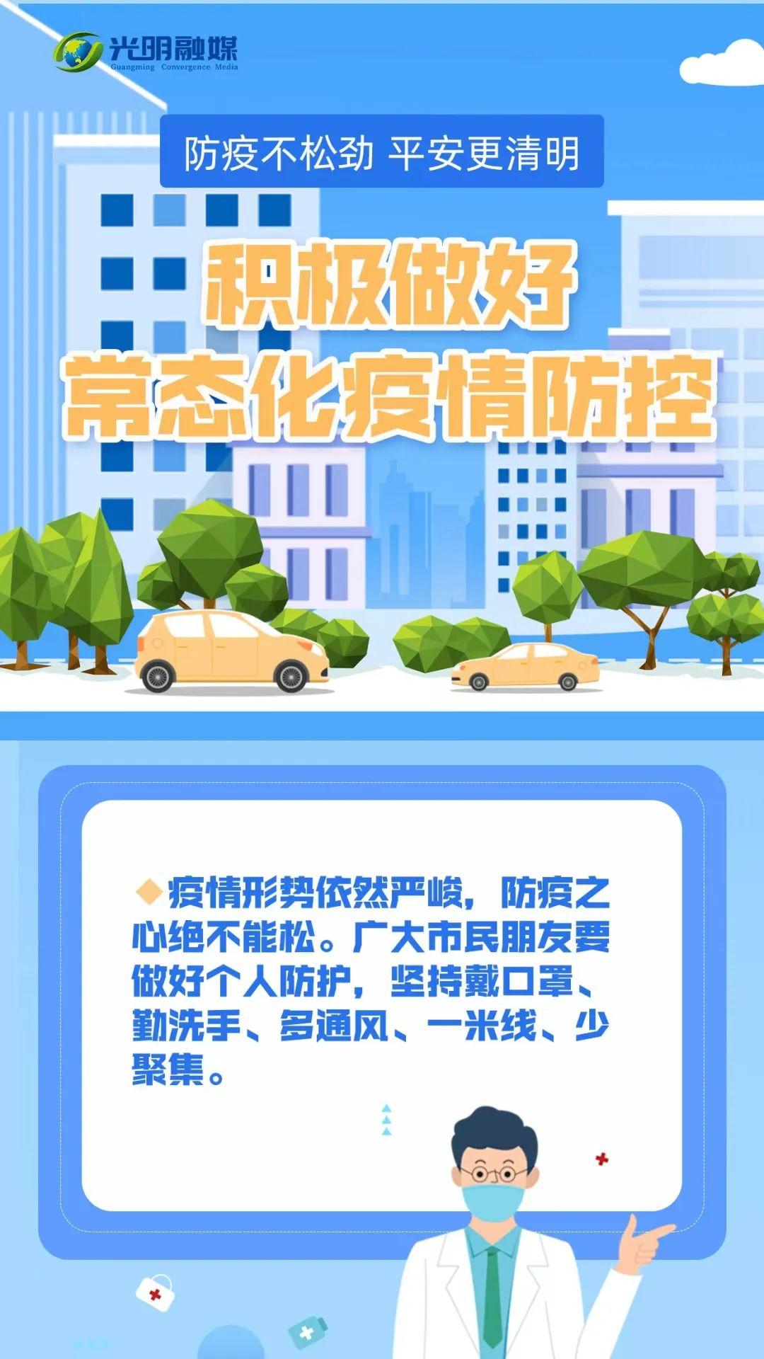 请市民继续履行个人防控责任,做好戴口罩、勤洗手、多通风、勤消毒、保持社交距离等防护措施,主动配合落实各项疫情防控措施。
