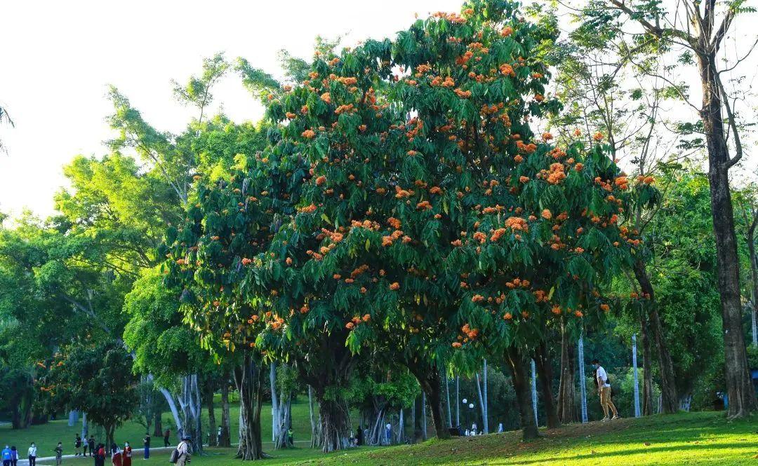 当前,公园里草木葱茏,繁花盛开,各大公园内朱槿、鸢尾花、无忧花、火烧花、洋红风铃木等正值盛花期,处处一派生机盎然的春日景象。