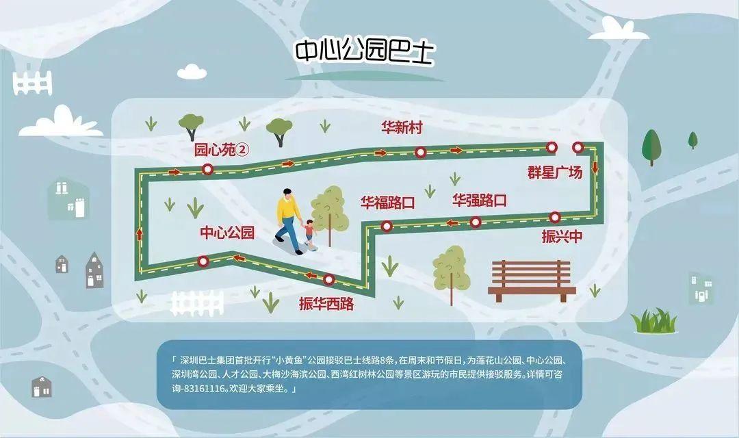为缓解公园停车位不足,倡导绿色出行,市城管和综合执法局联合深圳巴士集团和市交通运输局开通了8条公园巴士专线。