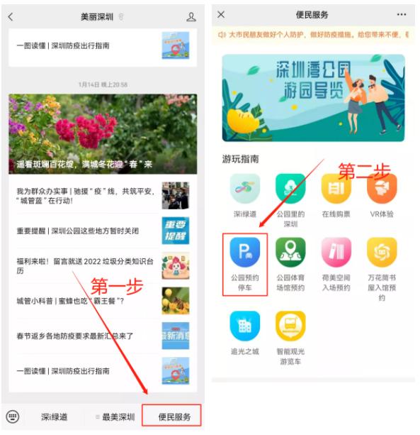 市民可在“美丽深圳”微信公众号上便能查看公园实时车位情况,确定有车位后再出行,最长可提前2小时预约。