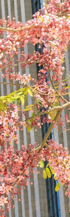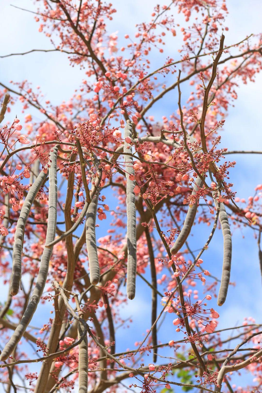 园博园南门广场、深圳湾公园的花旗木,有着“泰国樱花”之称,满树花开时宛若粉色云霞,令人惊艳,目前已初步绽放,预计清明期间将迎来盛花期。