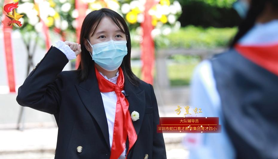 线上,来自蛇口育才教育集团育才三中、育才学校、育才二小、育才四小、太子湾学校,南山区荔香学校、同乐实验学校等7所学校的12名少先队员代表和7名学校团委书记、大队辅导员代表在中山公园“解放内伶仃岛纪念碑”前伫立。屏幕前,4万余名少先队员早已佩戴好红领巾和小白花,庄严肃立。