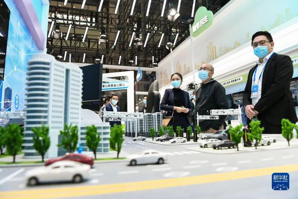 在深圳举行的第二十三届中国国际高新技术成果交易会智慧城市展区,观众了解华为智能网联。