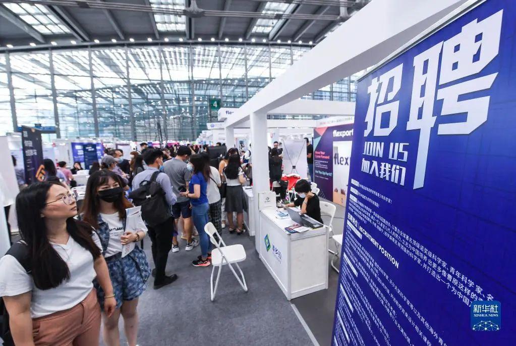 在深圳举行的中国国际人才交流大会海归人才招聘会上,求职人员查看招聘信息。