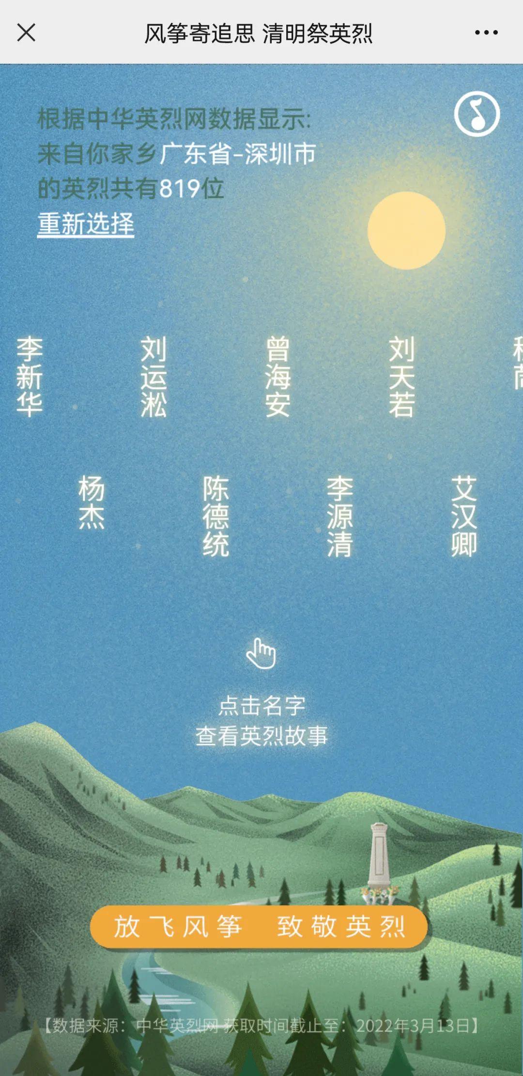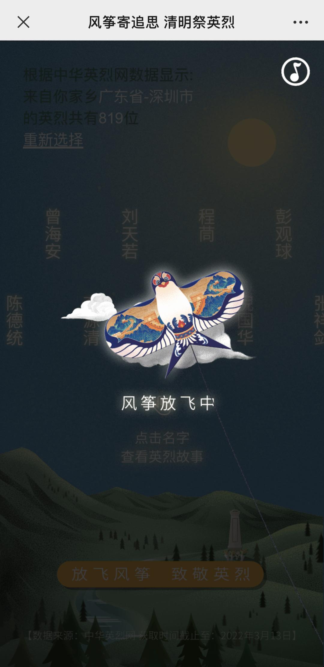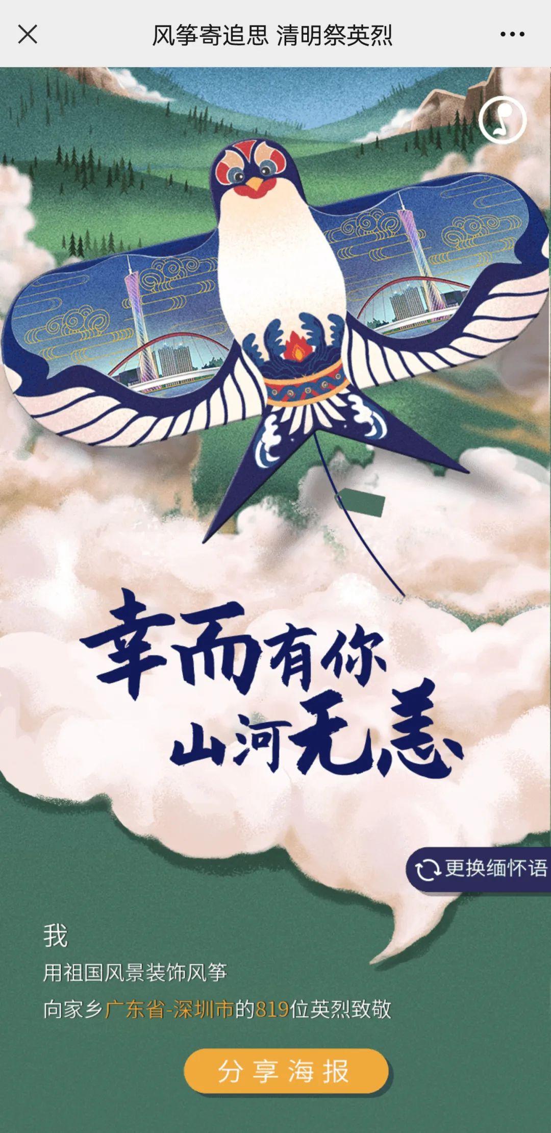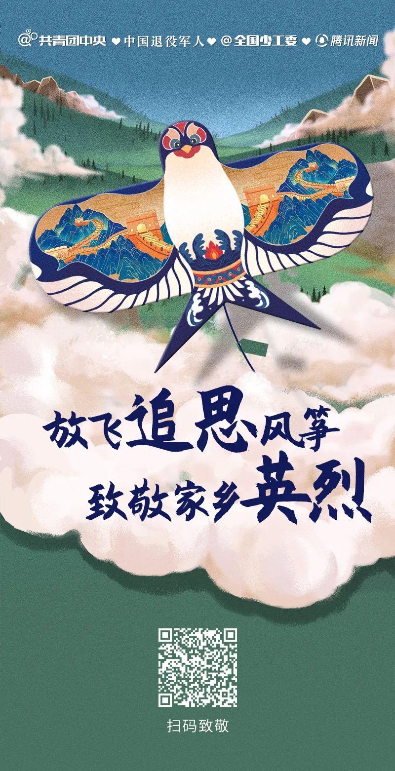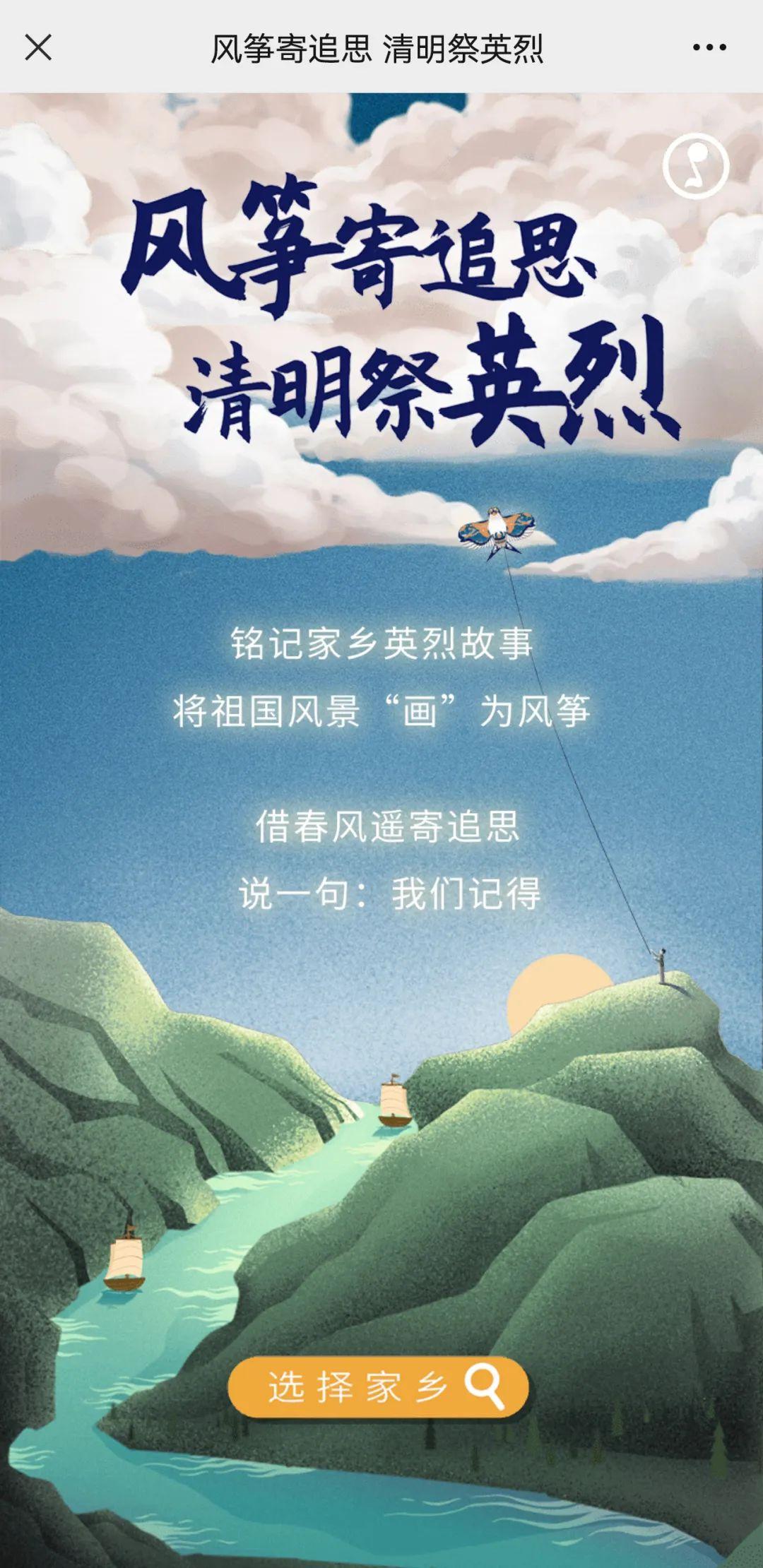 队员们,快来参与活动,在线上平台放飞一只属于你的小小追思风筝,向家乡的英雄英烈们致敬!