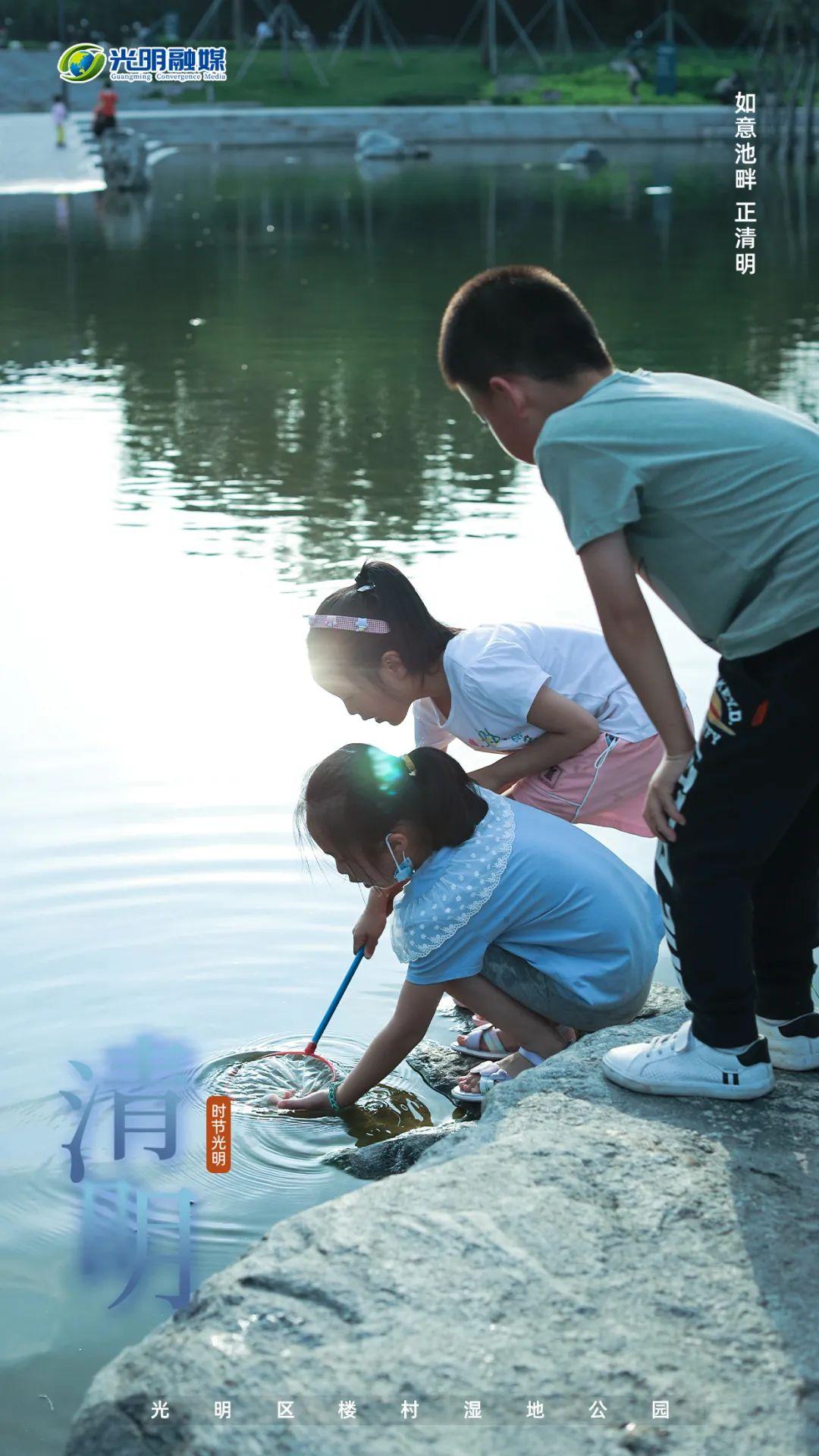 池塘倒映着孩子们天真烂漫的身影