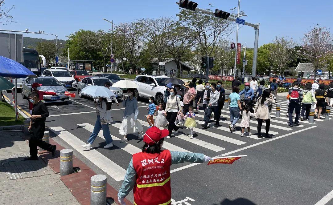 大鹏新区群团工作部、新区义工联在大鹏所城、较场尾、大鹏千禧路口、南澳中心站台、地质公园、杨梅坑等11个游客较多的志愿服务点,提供道路指引、旅游咨询等志愿服务,清明三天共182人次参与,服务时长超700小时,服务游客逾8000人。