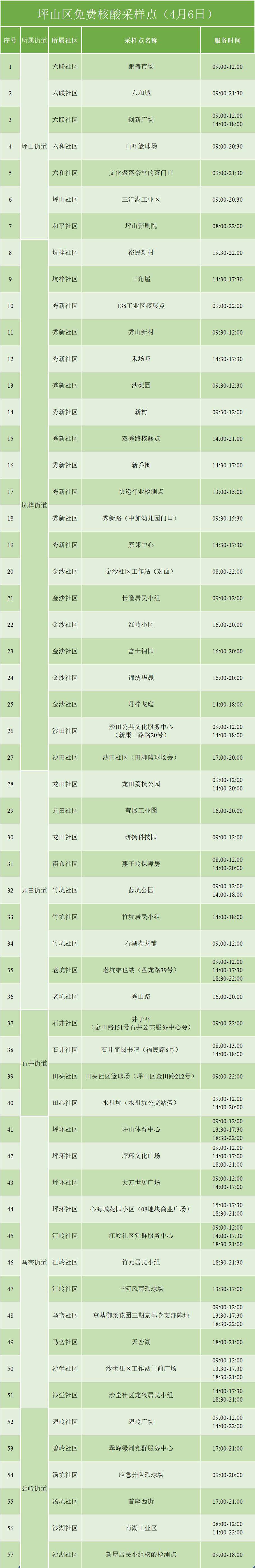坪山免费核酸检测点名单