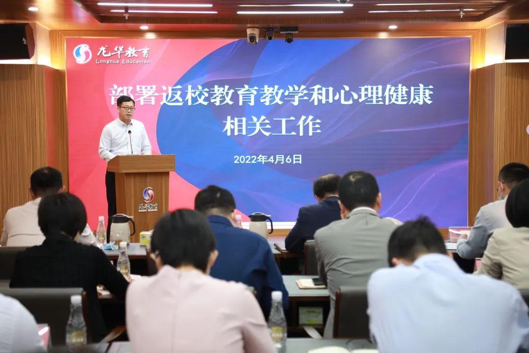 龙华区委教育工委书记、区教育局局长王玉玺,区委教育工委委员、区教育局党组成员段先清,区委教育工委委员、区教育局副局长李庆出席会议。本次会议以“线上+线下”的形式开展,在龙华区教育局七楼会议室设主会场,在各公民办学校、幼儿园设分会场。