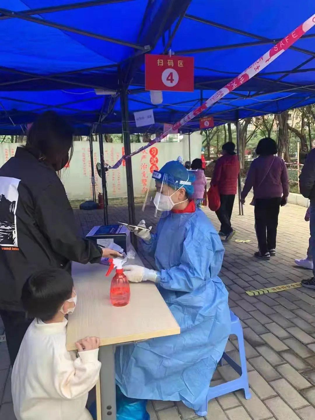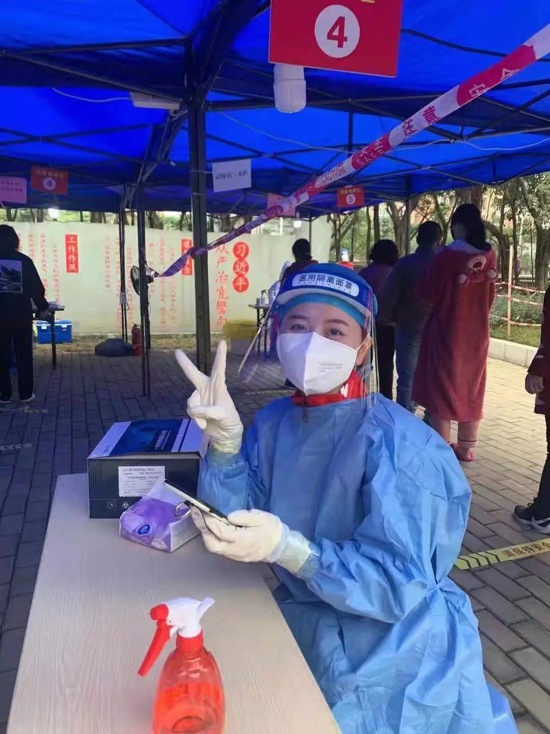 讲台之下的彭佳华老师还是一位充满爱心的志愿者,身体力行参与抗疫,为自己的学生们当好表率。在全民抗疫时刻,她寒假期间积极报名支援社区核酸检测,化身为核酸检测点可爱的扫码员。