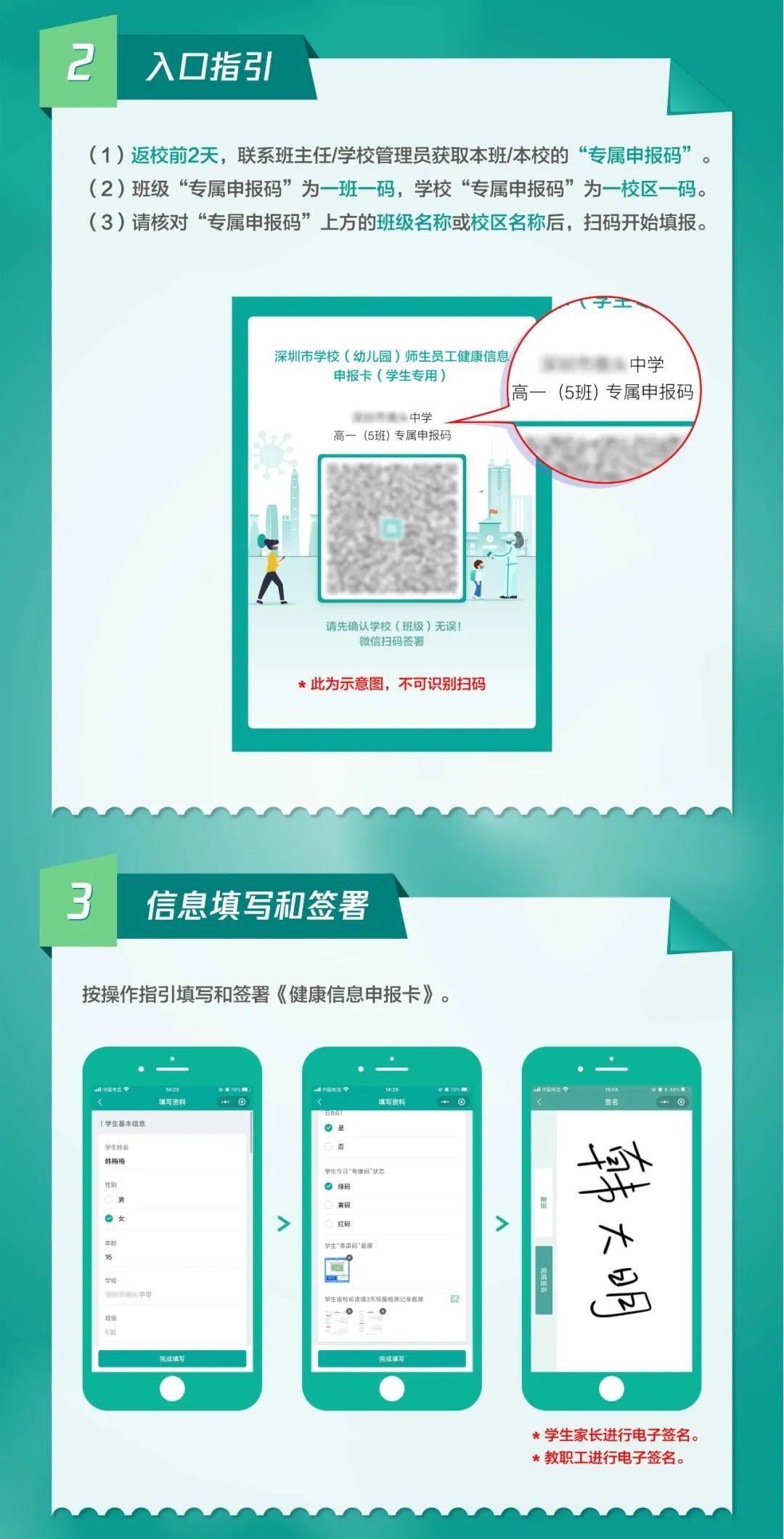 各区、各校的返校时间不同,师生员工只需在返校前2天联系学校(班主任)获取本校(本班级)“专属申报码”(学生一班一码,教职员工一校区一码),根据下方操作指引线上完成健康申报。