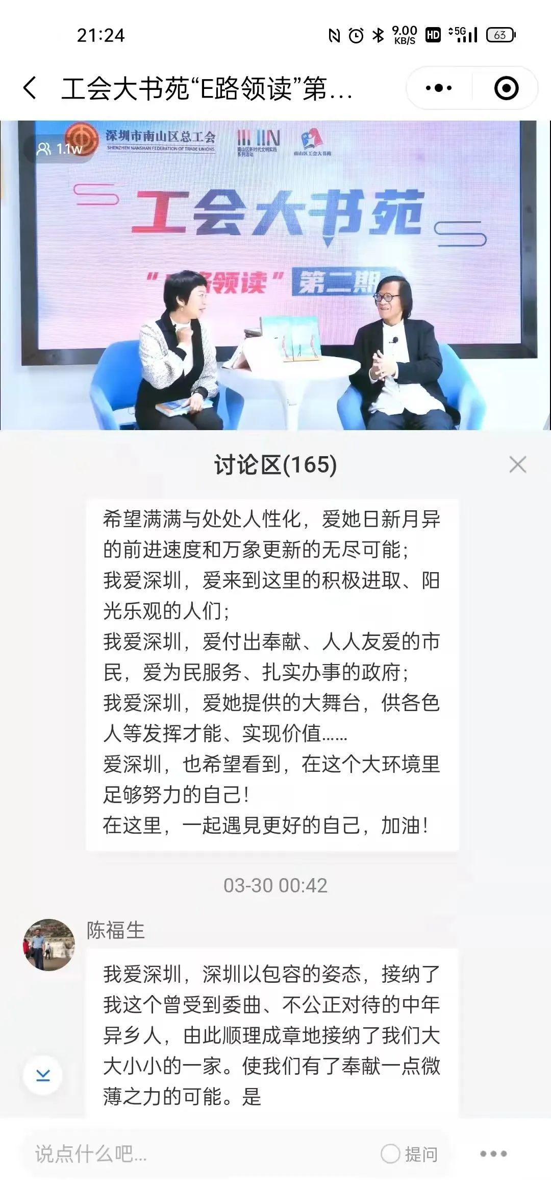 “我爱上深圳的理由”作为话题留言